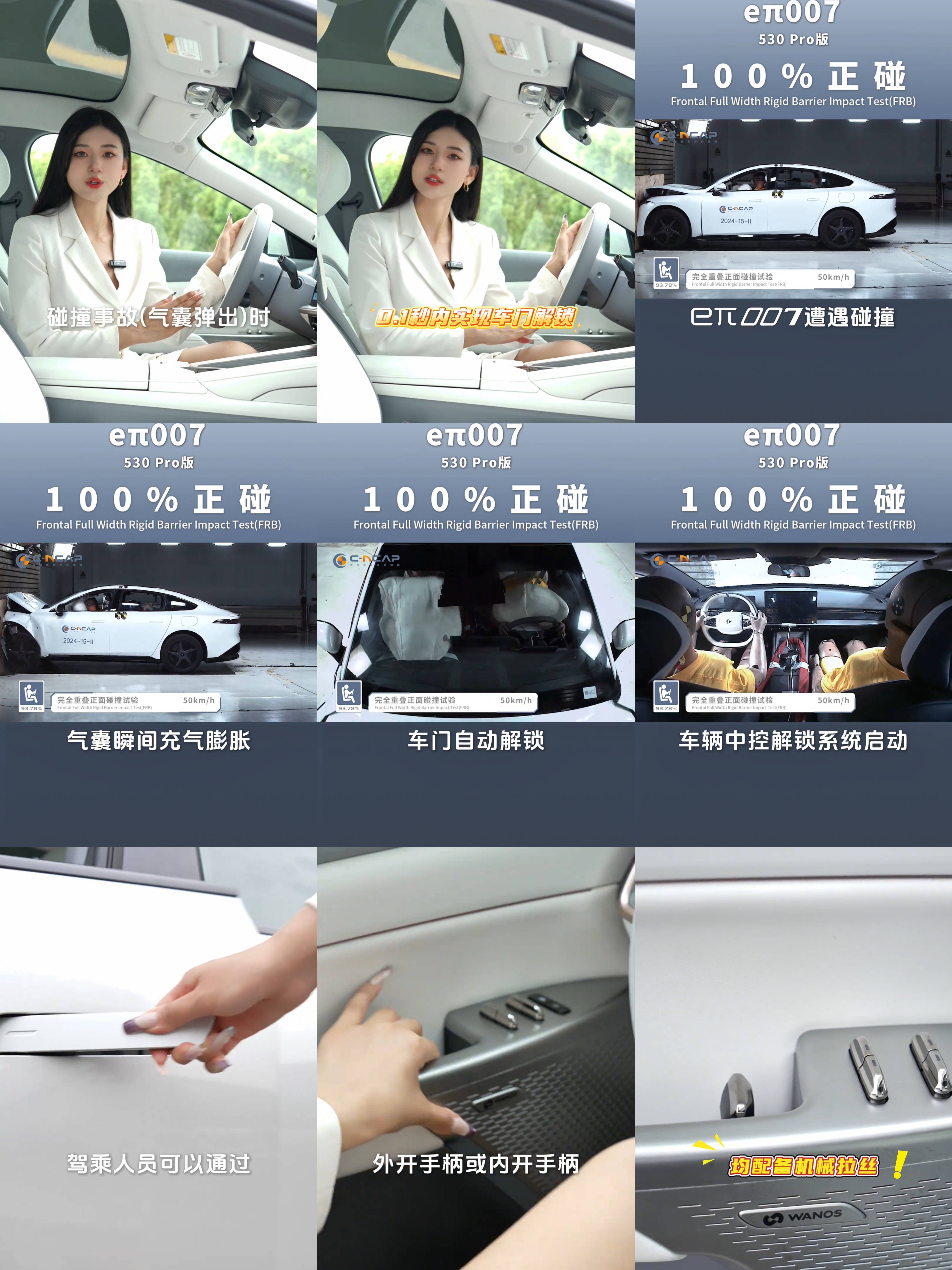 值得注意的是,东风奕派官方曾发布视频称,当eπ007发生碰撞事故(弹出气囊)时,0.1秒内就能实现车门解锁;当eπ007遭遇碰撞时,气囊瞬间充气膨胀,车门自动解锁,碰撞后,车辆中控解锁系统启动,驾乘人员可以通过外开手柄或内开手柄轻松开启车门;外开手柄或内开手柄均配备机械拉丝,确保在紧急情况下,车门能够可靠开启,为驾乘人员提供安全、便捷的逃生通道。